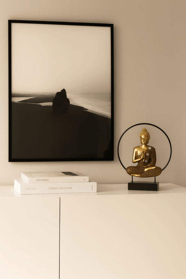 Buda que atrai prosperidade e abundância. Na imagem, o buda parece maior do que a realidade.
