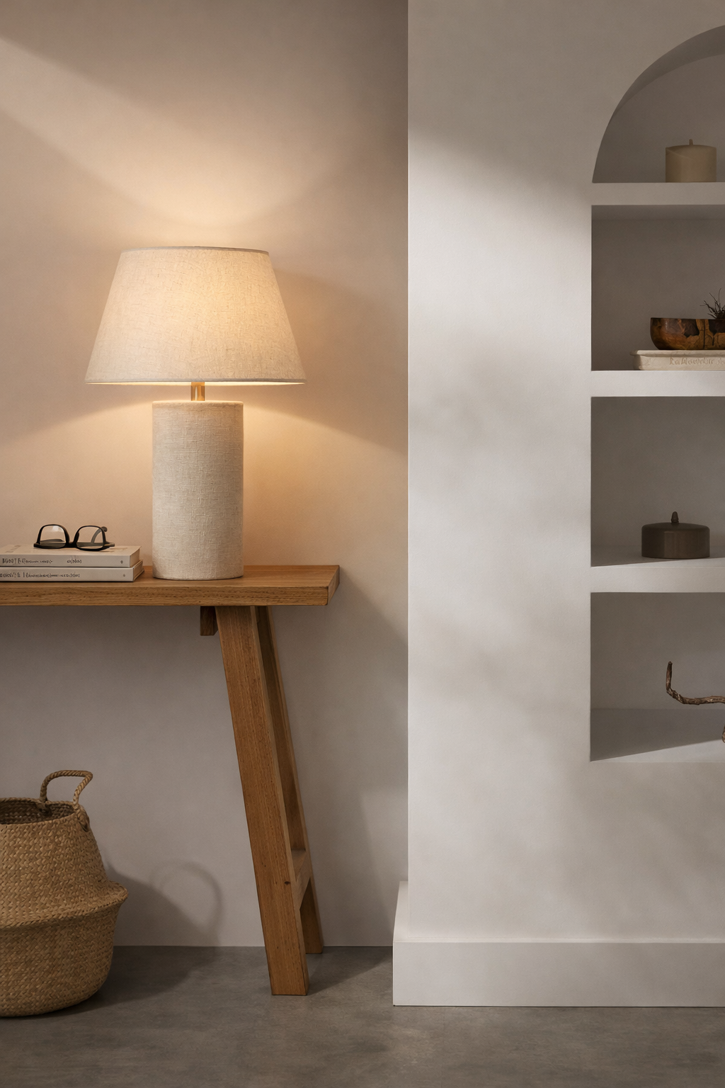O nosso candeeiro de mesa, através da sua estrutura elegante e acabamento aconchegante, é a combinação perfeita para adicionar elegância e luz a à sua casa.