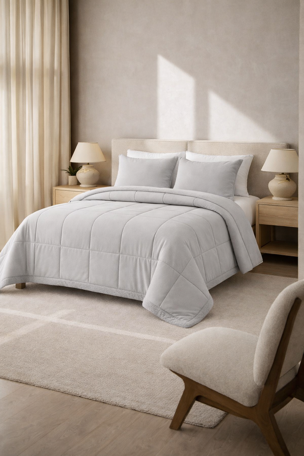 Edredão de borrego ideal para quem procura um maior conforto para as noites frias, apresentando uma composição de alta qualidade, um toque muito suave e aconchegante.