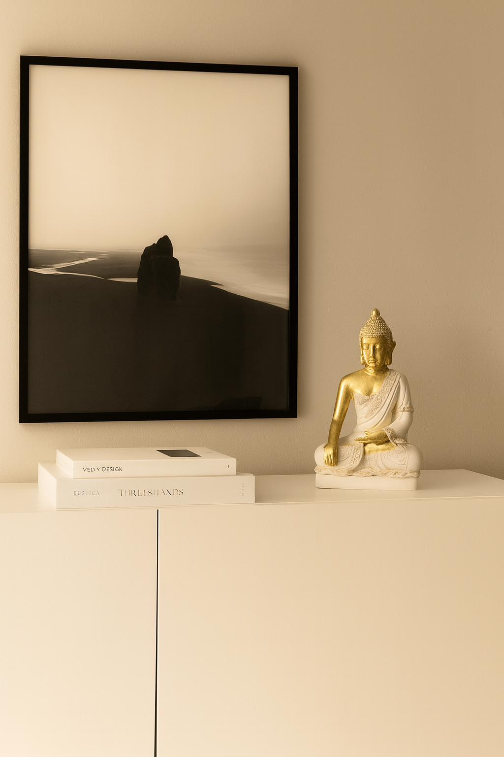 Buda que atrai prosperidade e abundância. Na imagem, o buda parece maior do que a realidade.