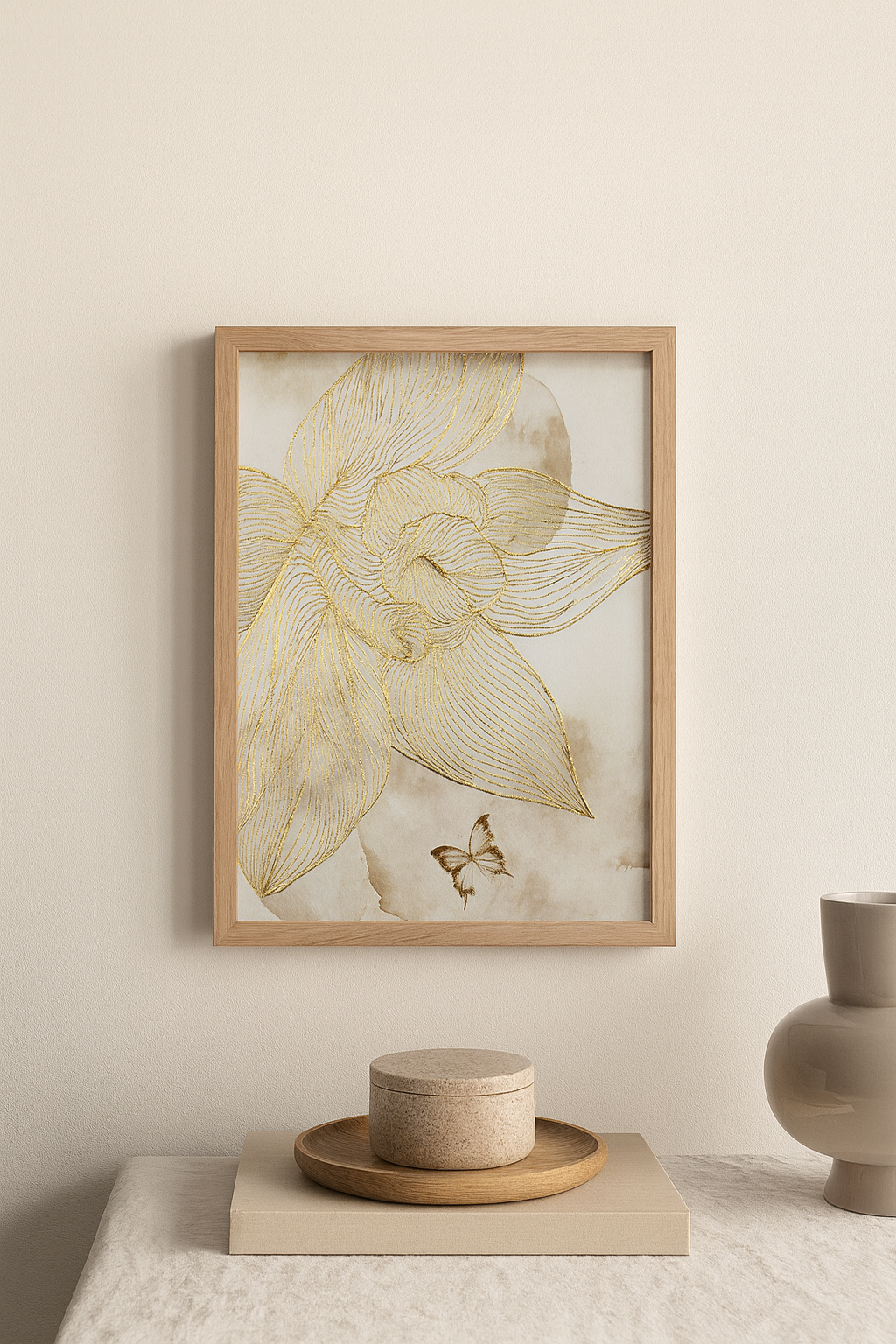 Tela/quadro dourado com pintura de flor ideal para criar um ambiente mais requintado a qualquer espaço.